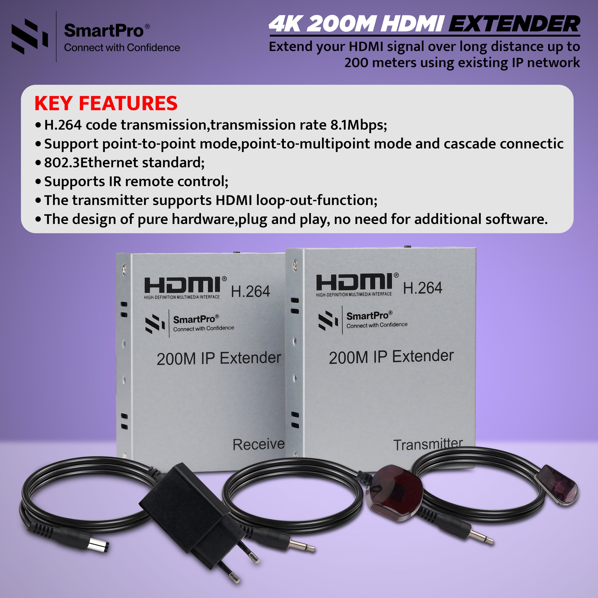 SmartPro 4K 200M HDMI Extender (Metal Body)