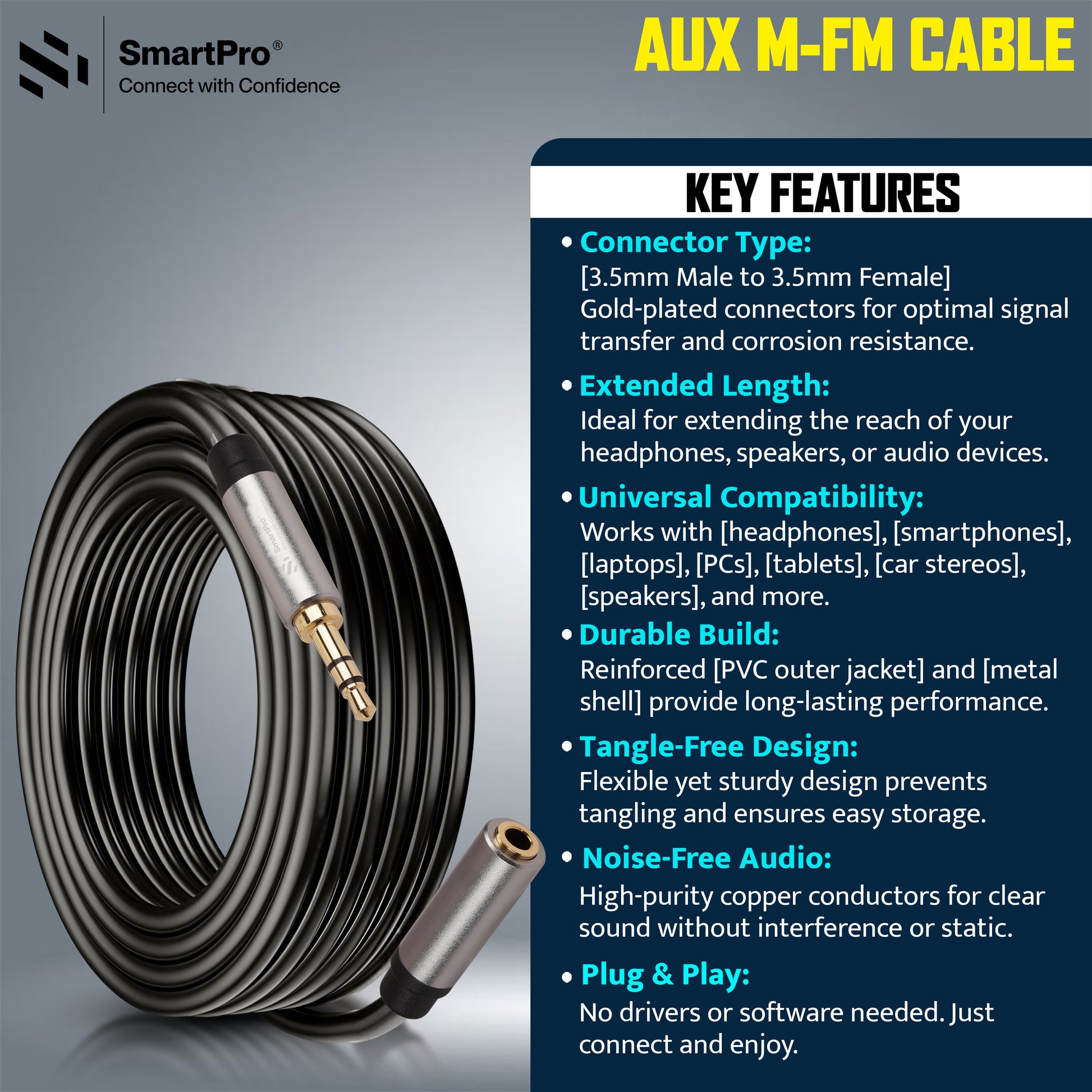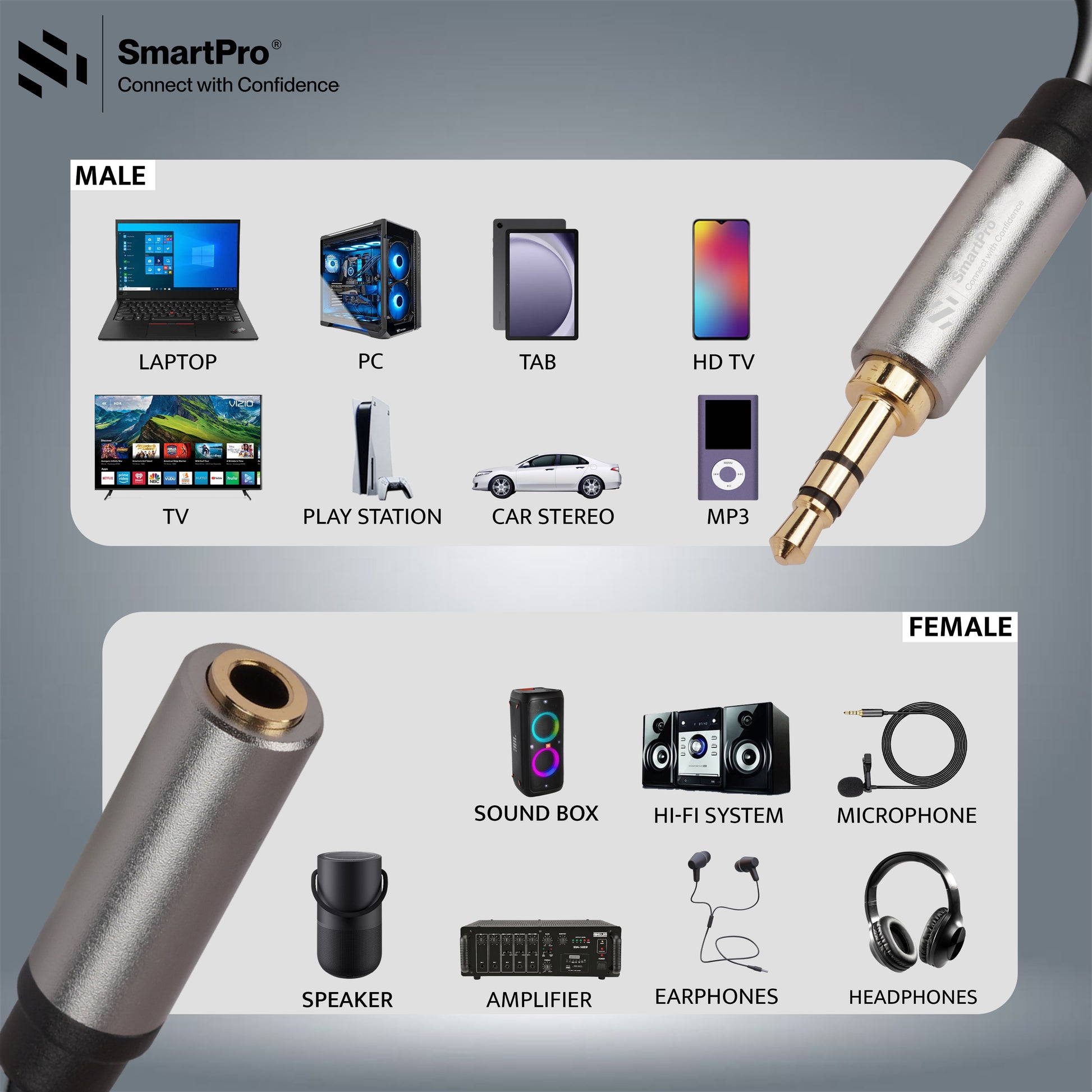 SmartPro is known for reliable, premium-quality accessories designed for durability and performance. This AUX Extension Cable is built to meet your everyday audio needs with ease and confidence.