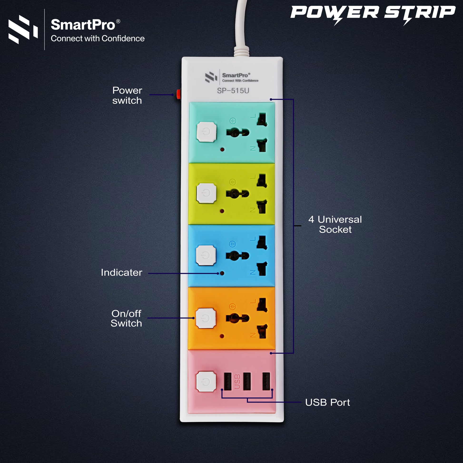 Equipped with a 1.8-meter heavy-duty cable, this power strip ensures extended reach and flexibility, making it ideal for offices, homes, entertainment setups, and more. Its durable SmartPro build guarantees long-lasting performance with overload protection for enhanced safety.