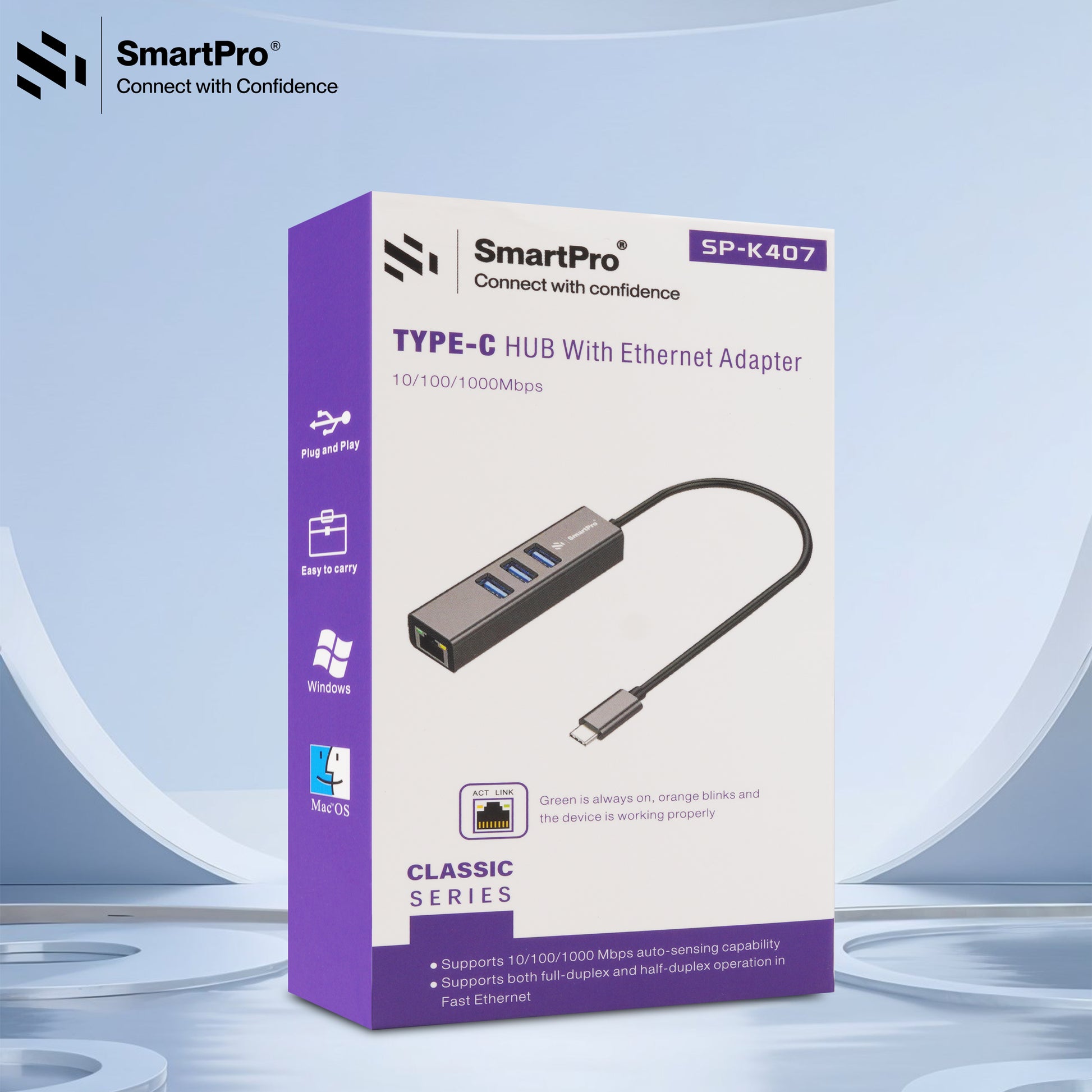 SmartPro Type-C to LAN + USB Hub (1000 Mbps) – Metal Body
